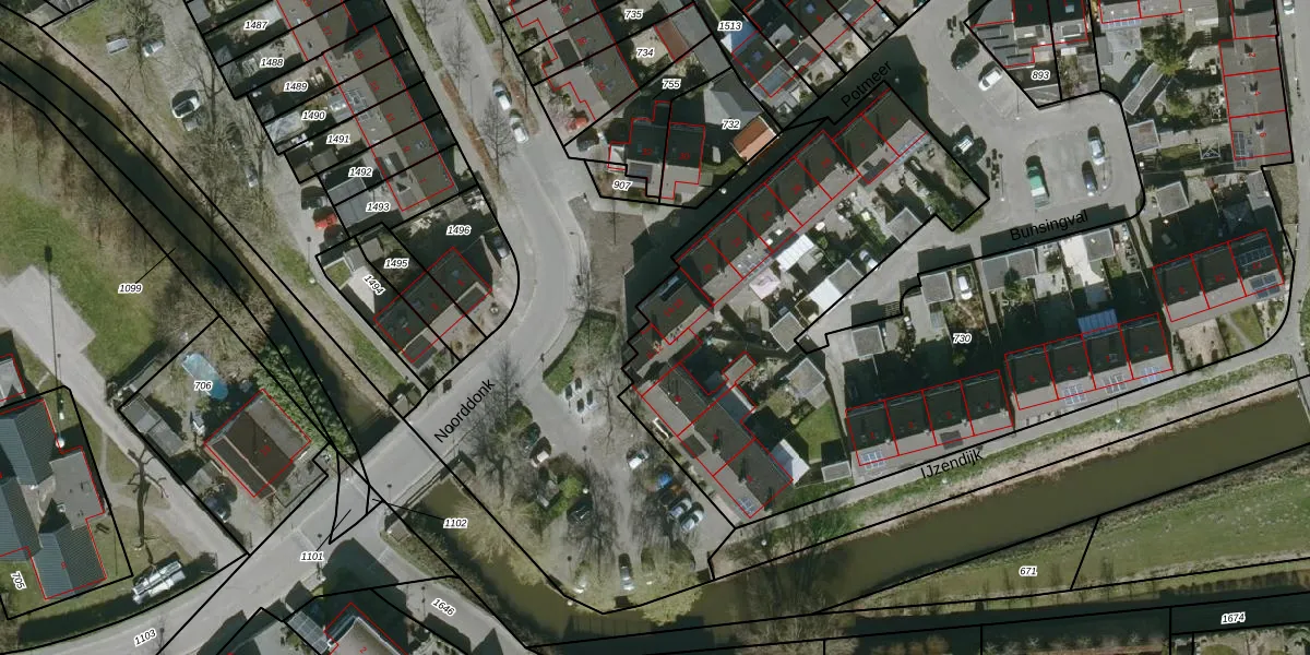 Het perceel waarop Noorddonk 14 staat heeft een oppervlakte van 4602 m². Dit is een zeer groot perceel. De perceeloppervlakte wordt geregistreerd door het Kadaster. Gedetailleerde informatie over de maten van dit perceel kunt u vinden in het rapport Kadastrale kaart met maatvoering van Noorddonk 14.