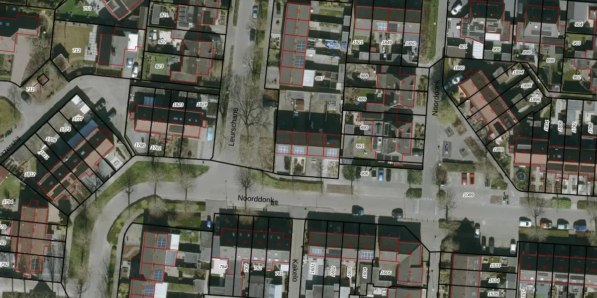 Het perceel waarop Noorddonk 77 staat heeft een oppervlakte van 1429 m². Dit is een zeer groot perceel. De perceeloppervlakte wordt geregistreerd door het Kadaster. Gedetailleerde informatie over de maten van dit perceel kunt u vinden in het rapport Kadastrale kaart met maatvoering van Noorddonk 77.
