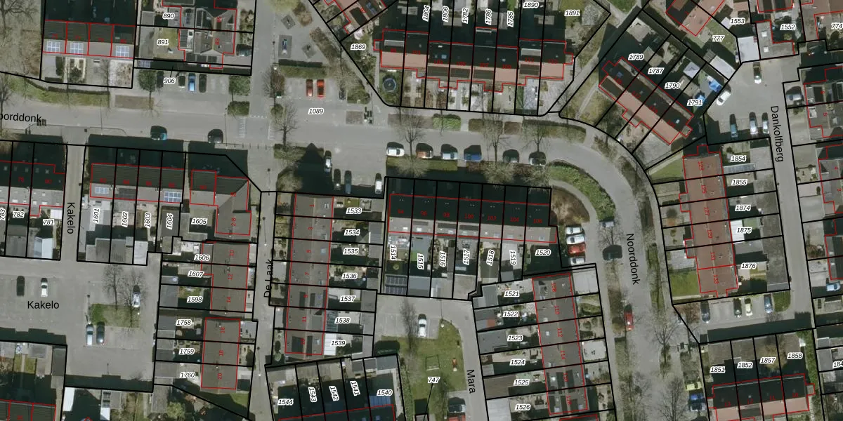 Gebruik de zoekbalk of klik op een perceel voor informatie over de adressen binnen dit perceel.