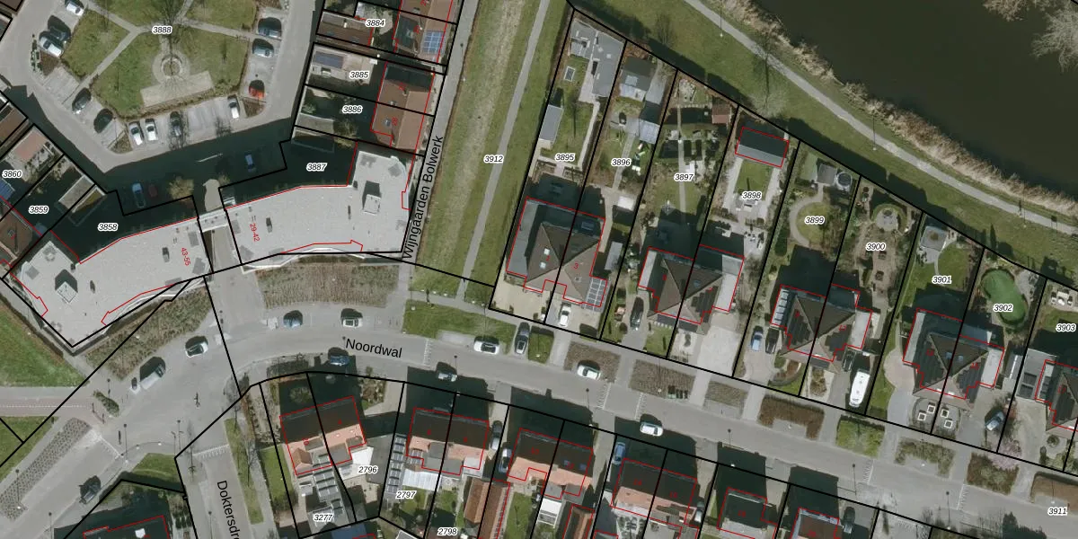 Gebruik de zoekbalk of klik op een perceel voor informatie over de adressen binnen dit perceel.