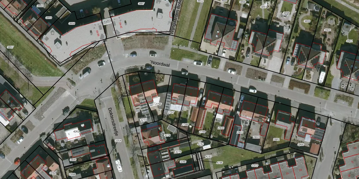 Het perceel waarop Noordwal 6 staat heeft een oppervlakte van 250 m². Dit is een middelgroot perceel. De perceeloppervlakte wordt geregistreerd door het Kadaster. Gedetailleerde informatie over de maten van dit perceel kunt u vinden in het rapport Kadastrale kaart met maatvoering van Noordwal 6.