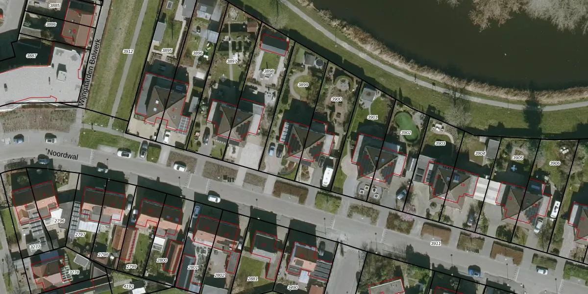 Het perceel waarop Noordwal 9 staat heeft een oppervlakte van 564 m². Dit is een groot perceel. De perceeloppervlakte wordt geregistreerd door het Kadaster. Gedetailleerde informatie over de maten van dit perceel kunt u vinden in het rapport Kadastrale kaart met maatvoering van Noordwal 9.