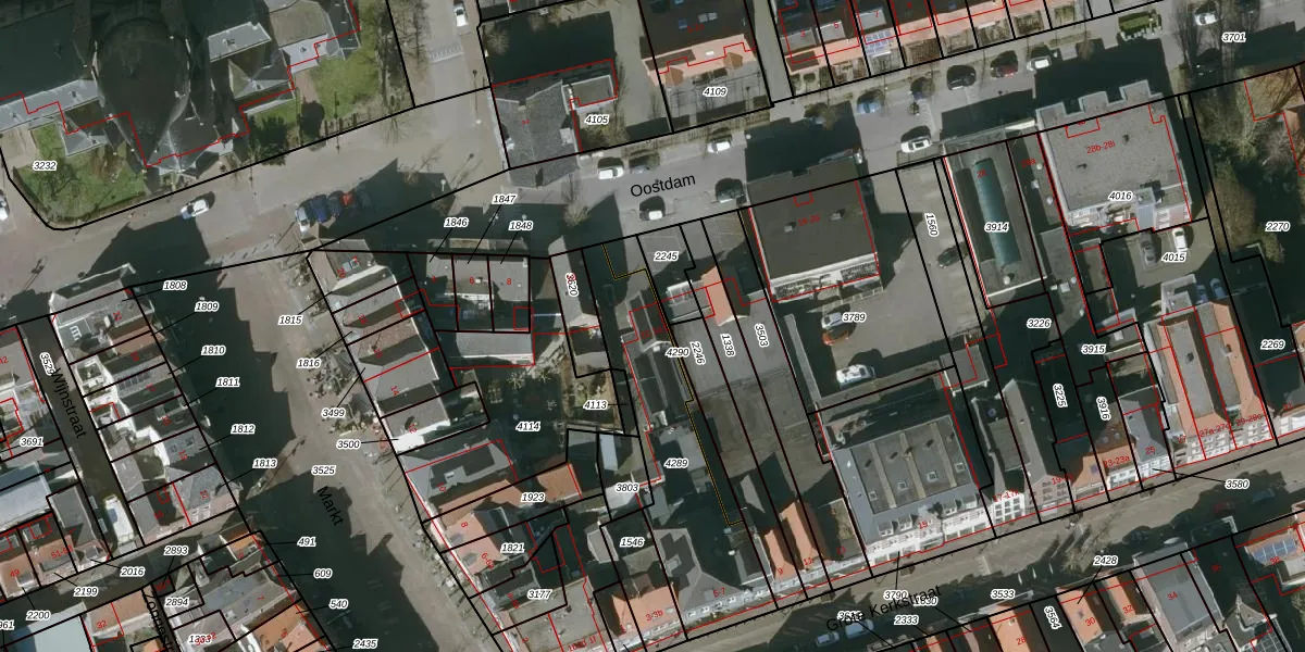 Het perceel waarop Oostdam 12 staat heeft een oppervlakte van 657 m². Dit is een groot perceel. De perceeloppervlakte wordt geregistreerd door het Kadaster. Gedetailleerde informatie over de maten van dit perceel kunt u vinden in het rapport Kadastrale kaart met maatvoering van Oostdam 12.