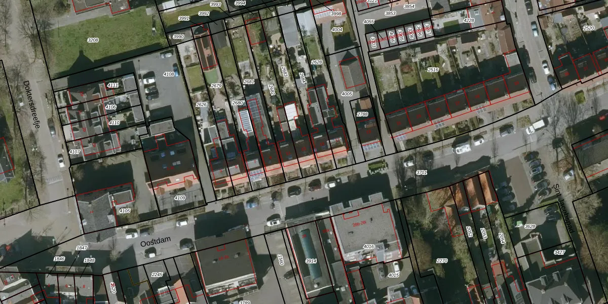 Het perceel waarop Oostdam 13 staat heeft een oppervlakte van 313 m². Dit is een groot perceel. De perceeloppervlakte wordt geregistreerd door het Kadaster. Gedetailleerde informatie over de maten van dit perceel kunt u vinden in het rapport Kadastrale kaart met maatvoering van Oostdam 13.