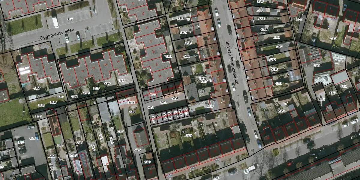 Gebruik de zoekbalk of klik op een perceel voor informatie over de adressen binnen dit perceel.