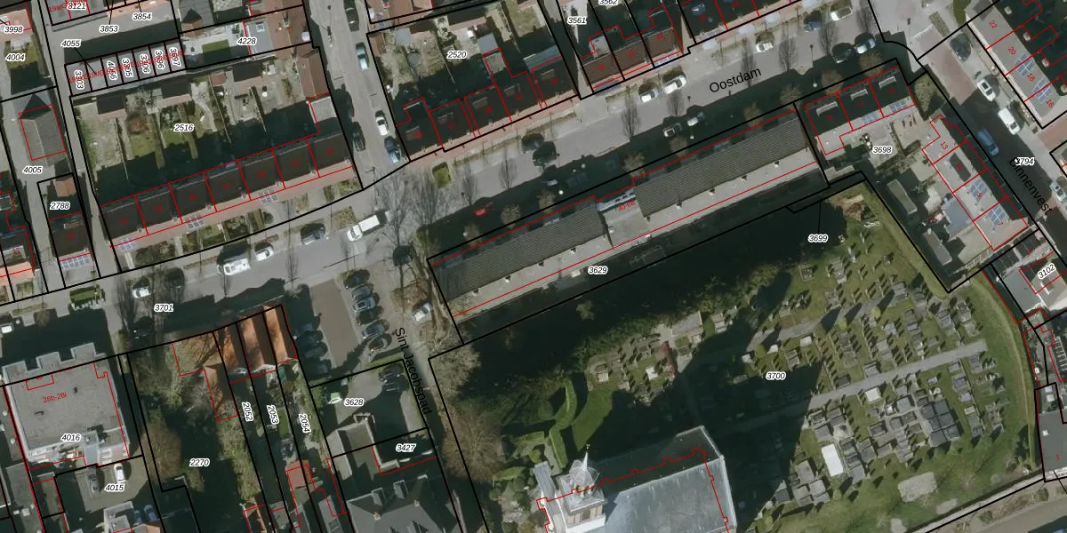 Het perceel waarop Oostdam 40 staat heeft een oppervlakte van 1300 m². Dit is een zeer groot perceel. De perceeloppervlakte wordt geregistreerd door het Kadaster. Gedetailleerde informatie over de maten van dit perceel kunt u vinden in het rapport Kadastrale kaart met maatvoering van Oostdam 40.