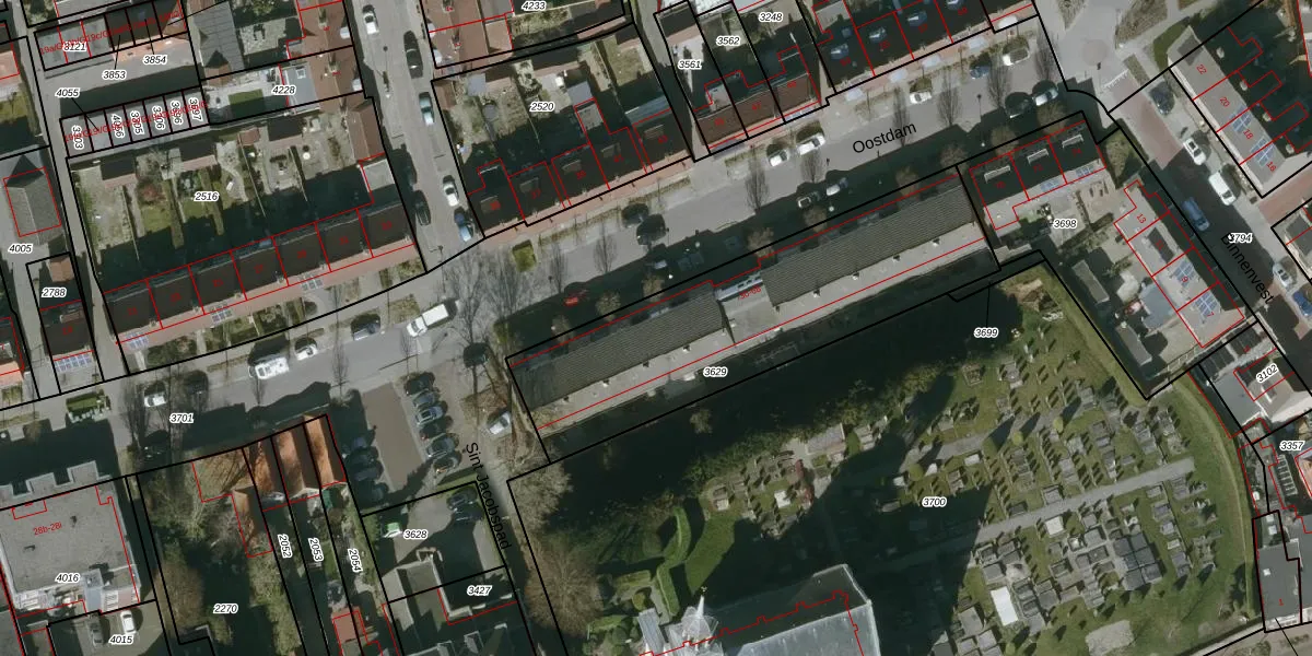 Het perceel waarop Oostdam 42 staat heeft een oppervlakte van 1300 m². Dit is een zeer groot perceel. De perceeloppervlakte wordt geregistreerd door het Kadaster. Gedetailleerde informatie over de maten van dit perceel kunt u vinden in het rapport Kadastrale kaart met maatvoering van Oostdam 42.