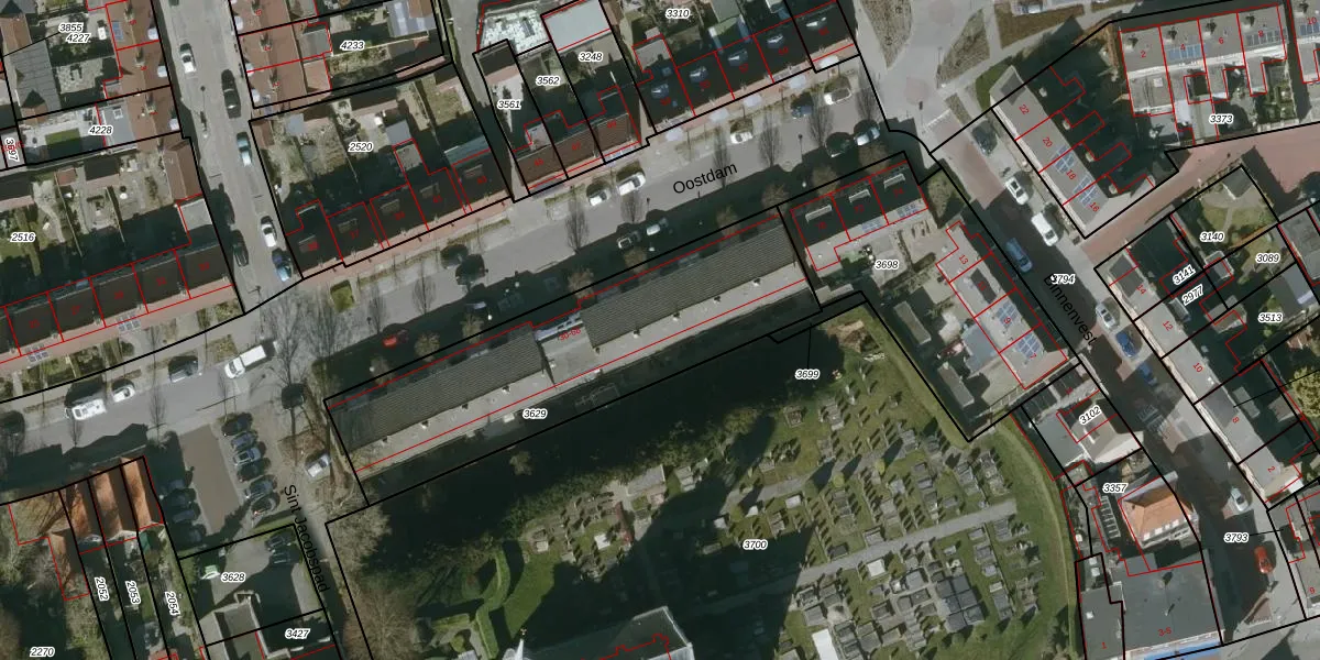 Het perceel waarop Oostdam 56 staat heeft een oppervlakte van 1300 m². Dit is een zeer groot perceel. De perceeloppervlakte wordt geregistreerd door het Kadaster. Gedetailleerde informatie over de maten van dit perceel kunt u vinden in het rapport Kadastrale kaart met maatvoering van Oostdam 56.