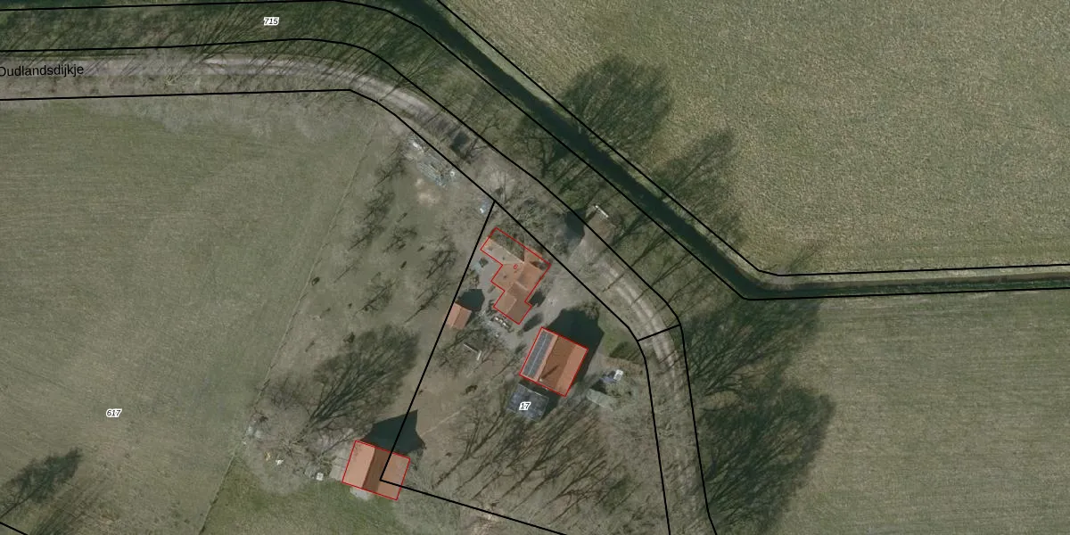 Het perceel waarop Oudlandsdijkje 6 staat heeft een oppervlakte van 2160 m². Dit is een zeer groot perceel. De perceeloppervlakte wordt geregistreerd door het Kadaster. Gedetailleerde informatie over de maten van dit perceel kunt u vinden in het rapport Kadastrale kaart met maatvoering van Oudlandsdijkje 6.