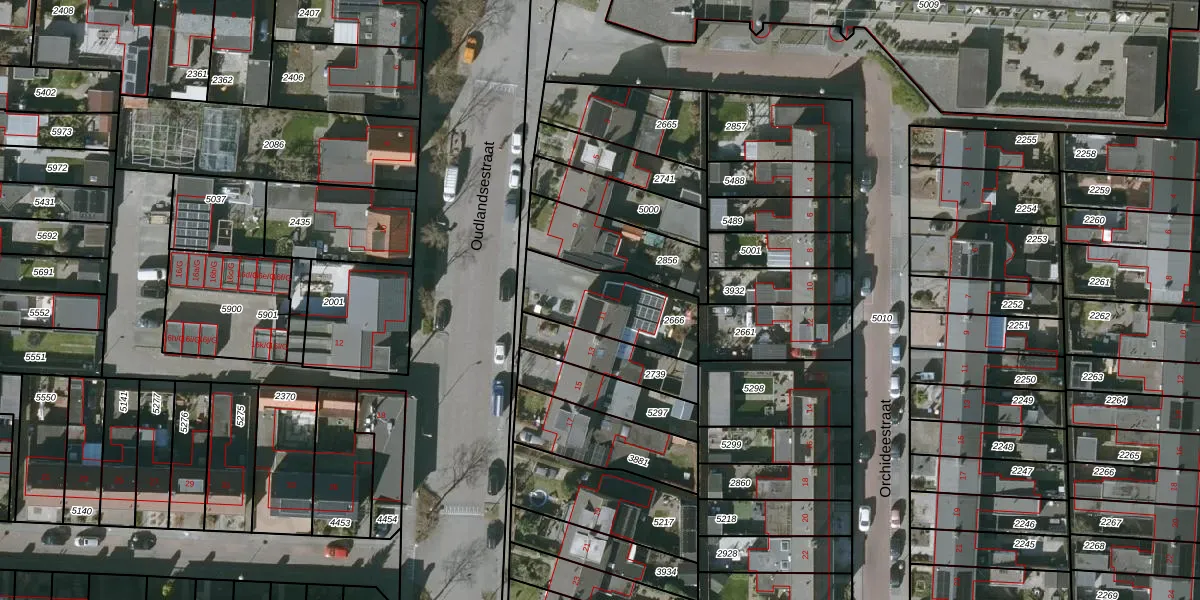 Gebruik de zoekbalk of klik op een perceel voor informatie over de adressen binnen dit perceel.