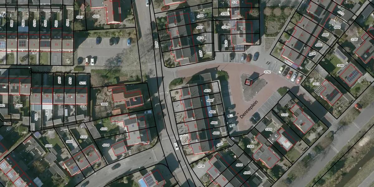 Gebruik de zoekbalk of klik op een perceel voor informatie over de adressen binnen dit perceel.