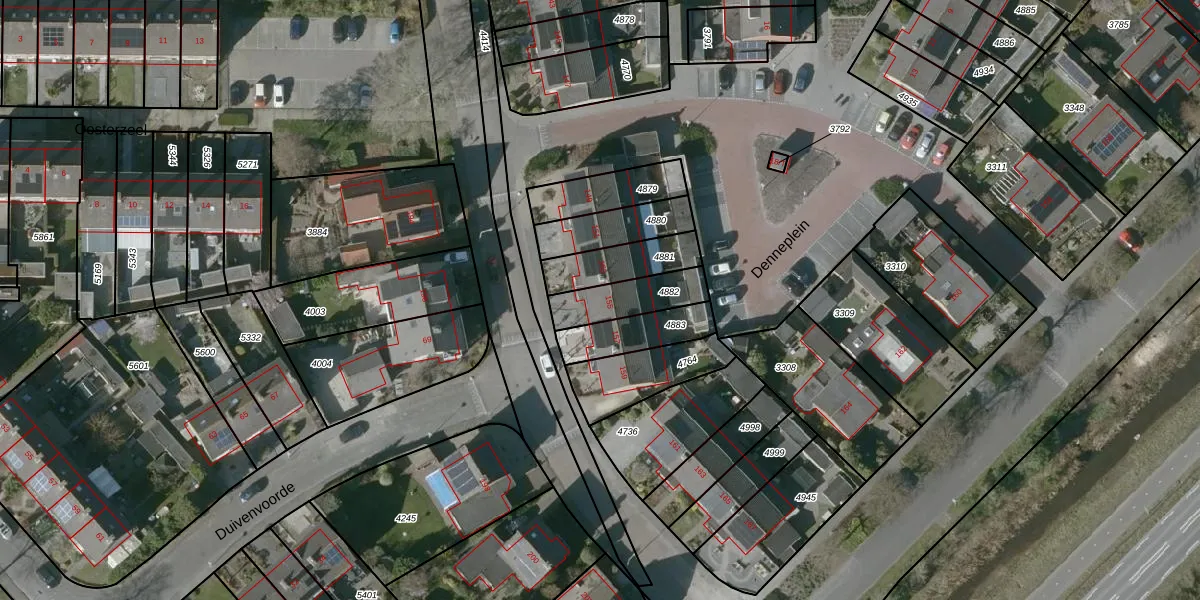 Gebruik de zoekbalk of klik op een perceel voor informatie over de adressen binnen dit perceel.