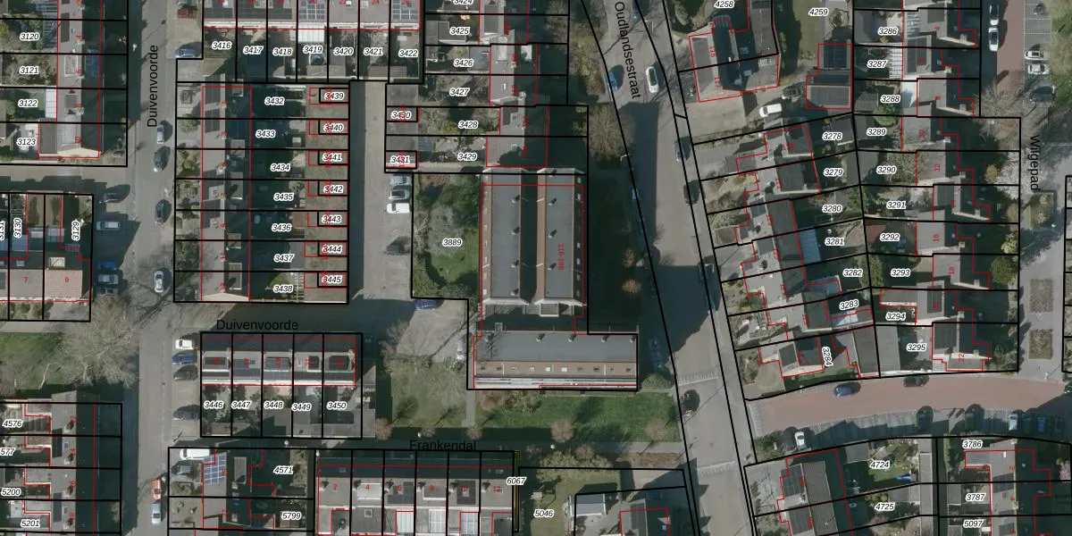 Het perceel waarop Oudlandsestraat 174 staat heeft een oppervlakte van 1242 m². Dit is een zeer groot perceel. De perceeloppervlakte wordt geregistreerd door het Kadaster. Gedetailleerde informatie over de maten van dit perceel kunt u vinden in het rapport Kadastrale kaart met maatvoering van Oudlandsestraat 174.