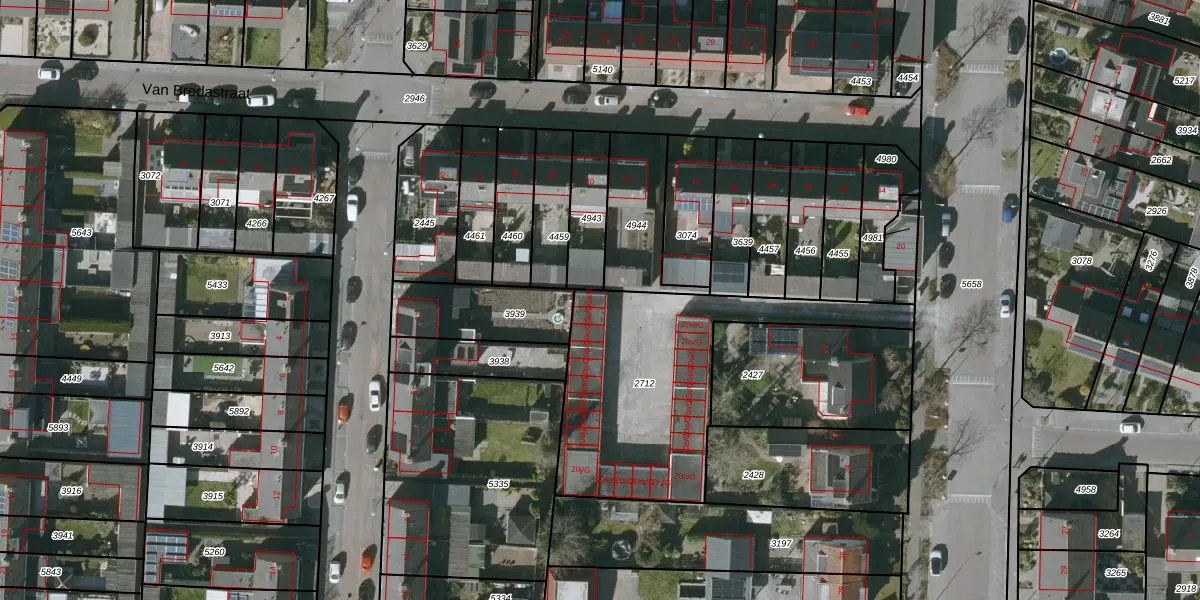 Oudlandsestraat 20-a-G is gelegen op kadastraal perceel SBG02Q2712. Deze kadastrale aanduiding is uniek en wordt gebruikt door het Kadaster om eigendomsrechten en andere zakelijke rechten vast te leggen. Het perceel maakt onderdeel uit van de kadastrale gemeente Steenbergen.