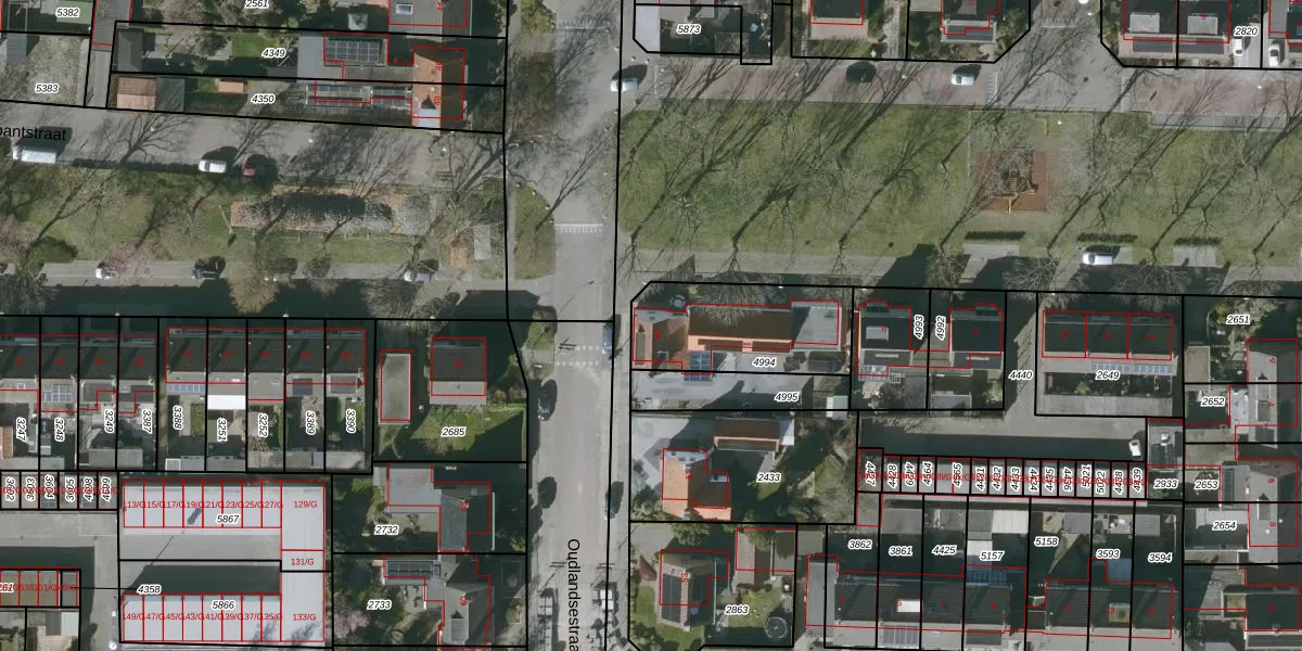 Gebruik de zoekbalk of klik op een perceel voor informatie over de adressen binnen dit perceel.