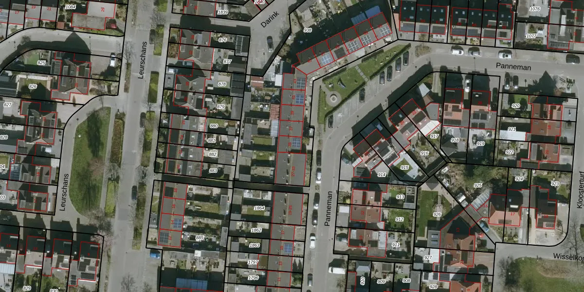 Het perceel waarop Panneman 35 staat heeft een oppervlakte van 1950 m². Dit is een zeer groot perceel. De perceeloppervlakte wordt geregistreerd door het Kadaster. Gedetailleerde informatie over de maten van dit perceel kunt u vinden in het rapport Kadastrale kaart met maatvoering van Panneman 35.