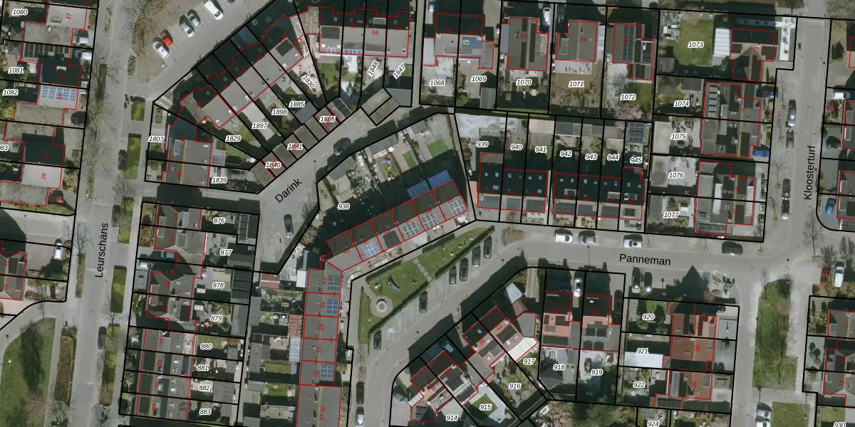Het perceel waarop Panneman 53 staat heeft een oppervlakte van 1950 m². Dit is een zeer groot perceel. De perceeloppervlakte wordt geregistreerd door het Kadaster. Gedetailleerde informatie over de maten van dit perceel kunt u vinden in het rapport Kadastrale kaart met maatvoering van Panneman 53.
