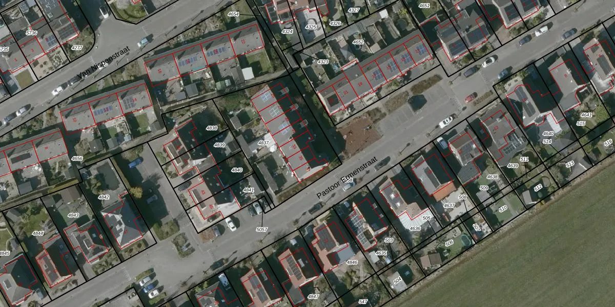 Het perceel waarop Pastoor Ermenstraat 35 staat heeft een oppervlakte van 963 m². Dit is een groot perceel. De perceeloppervlakte wordt geregistreerd door het Kadaster. Gedetailleerde informatie over de maten van dit perceel kunt u vinden in het rapport Kadastrale kaart met maatvoering van Pastoor Ermenstraat 35.