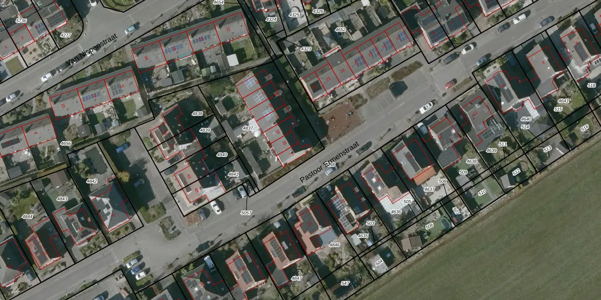Het perceel waarop Pastoor Ermenstraat 37 staat heeft een oppervlakte van 963 m². Dit is een groot perceel. De perceeloppervlakte wordt geregistreerd door het Kadaster. Gedetailleerde informatie over de maten van dit perceel kunt u vinden in het rapport Kadastrale kaart met maatvoering van Pastoor Ermenstraat 37.