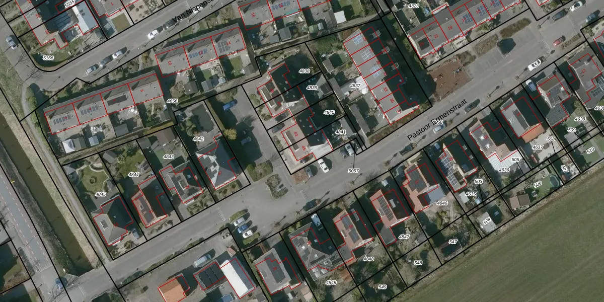 Gebruik de zoekbalk of klik op een perceel voor informatie over de adressen binnen dit perceel.