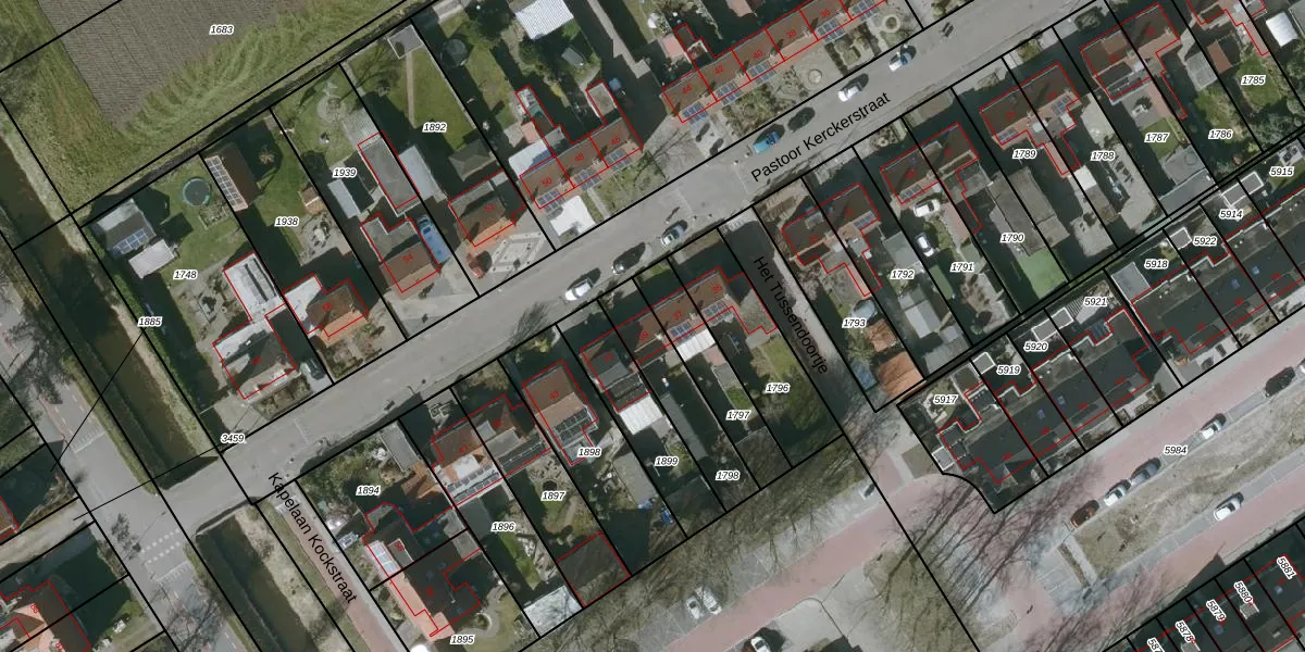 Gebruik de zoekbalk of klik op een perceel voor informatie over de adressen binnen dit perceel.