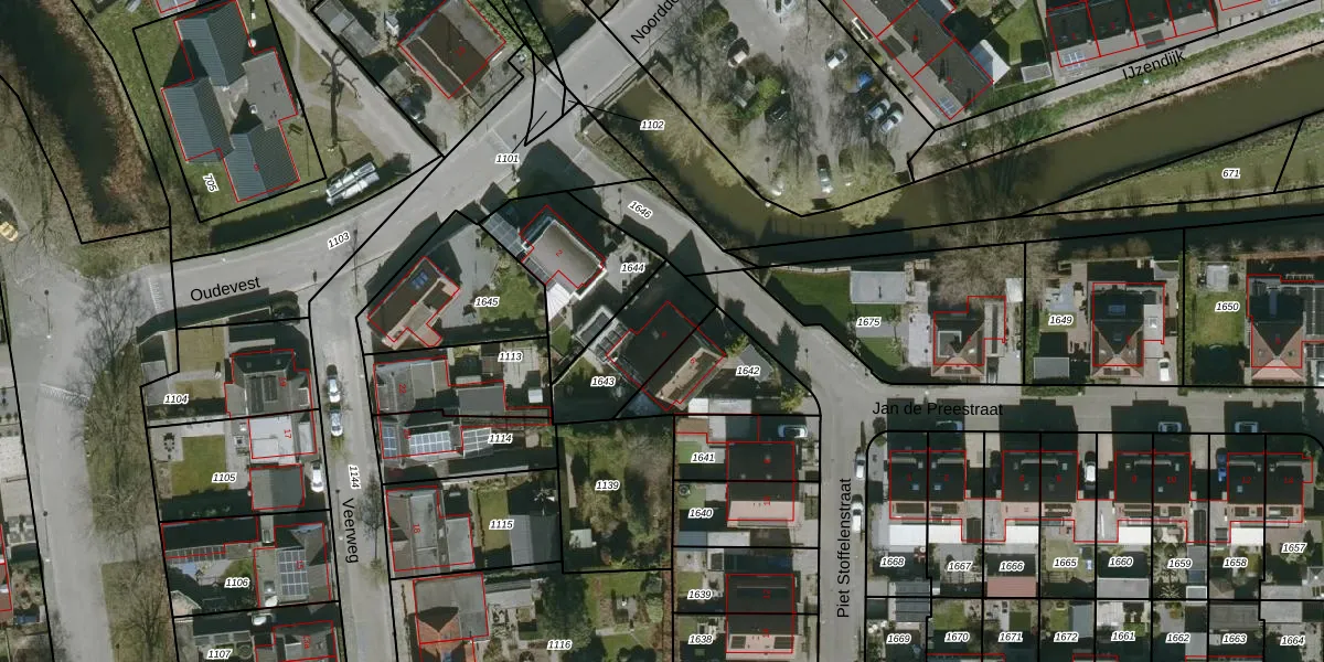 Gebruik de zoekbalk of klik op een perceel voor informatie over de adressen binnen dit perceel.