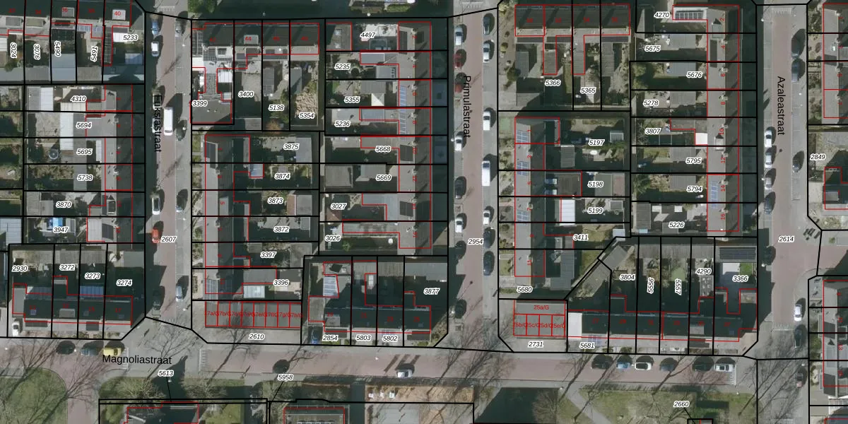 Gebruik de zoekbalk of klik op een perceel voor informatie over de adressen binnen dit perceel.