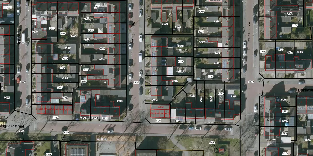 Het perceel waarop Primulastraat 9 staat heeft een oppervlakte van 182 m². Dit is een middelgroot perceel. De perceeloppervlakte wordt geregistreerd door het Kadaster. Gedetailleerde informatie over de maten van dit perceel kunt u vinden in het rapport Kadastrale kaart met maatvoering van Primulastraat 9.