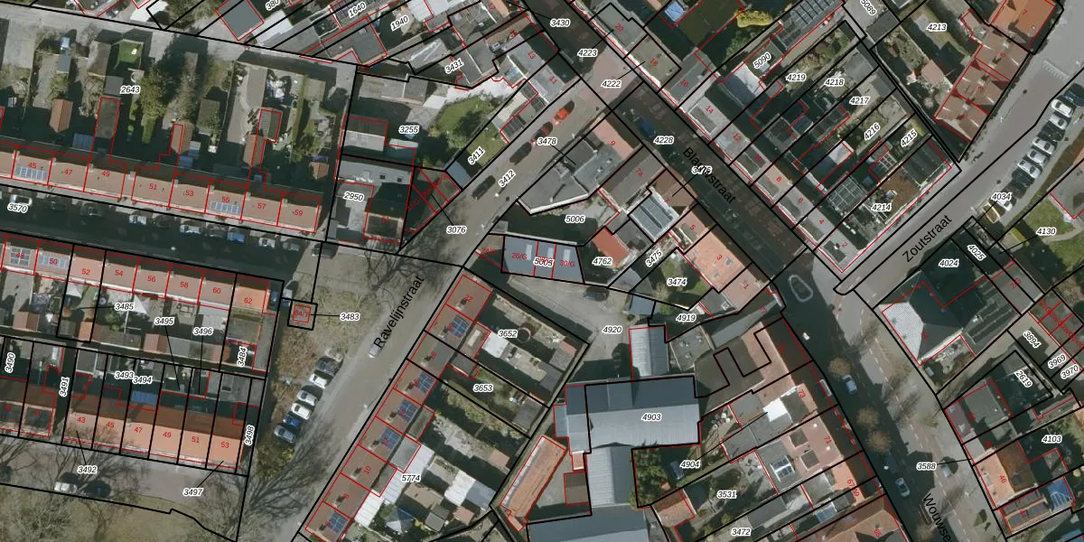 Het perceel waarop Ravelijnstraat 28-G staat heeft een oppervlakte van 97 m². Dit is een klein perceel. De perceeloppervlakte wordt geregistreerd door het Kadaster. Gedetailleerde informatie over de maten van dit perceel kunt u vinden in het rapport Kadastrale kaart met maatvoering van Ravelijnstraat 28-G.