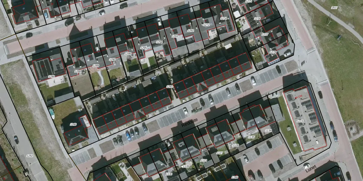 Het perceel waarop Redoute 20 staat heeft een oppervlakte van 2190 m². Dit is een zeer groot perceel. De perceeloppervlakte wordt geregistreerd door het Kadaster. Gedetailleerde informatie over de maten van dit perceel kunt u vinden in het rapport Kadastrale kaart met maatvoering van Redoute 20.