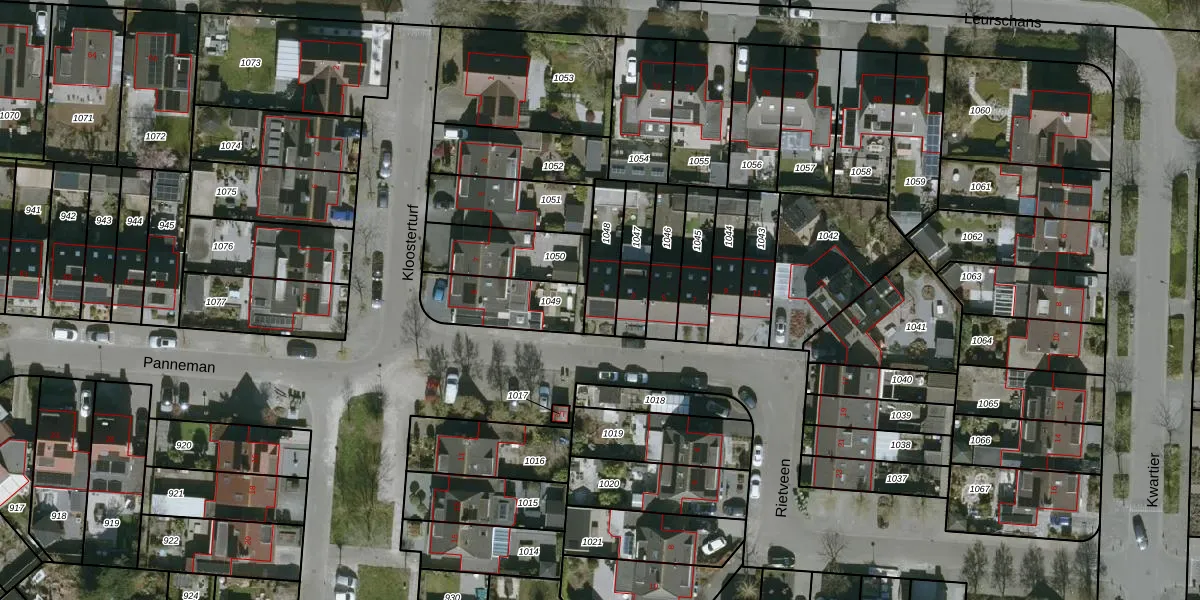 Het perceel waarop Rietveen 1 staat heeft een oppervlakte van 136 m². Dit is een middelgroot perceel. De perceeloppervlakte wordt geregistreerd door het Kadaster. Gedetailleerde informatie over de maten van dit perceel kunt u vinden in het rapport Kadastrale kaart met maatvoering van Rietveen 1.