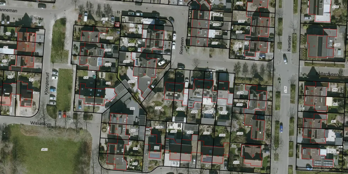 Gebruik de zoekbalk of klik op een perceel voor informatie over de adressen binnen dit perceel.