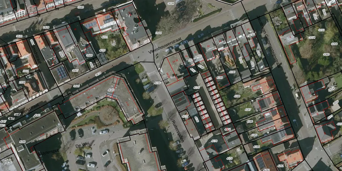 Het perceel waarop Ruiterstallen 16 staat heeft een oppervlakte van 288 m². Dit is een middelgroot perceel. De perceeloppervlakte wordt geregistreerd door het Kadaster. Gedetailleerde informatie over de maten van dit perceel kunt u vinden in het rapport Kadastrale kaart met maatvoering van Ruiterstallen 16.