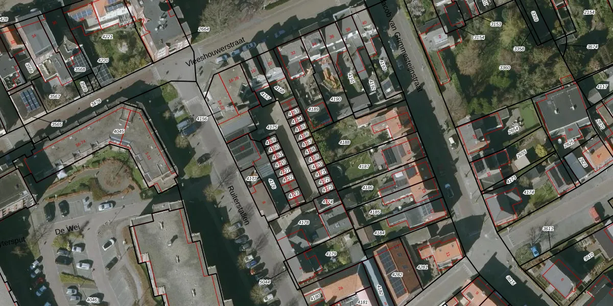 Ruiterstallen 34-G is gelegen op kadastraal perceel SBG02Q4168. Deze kadastrale aanduiding is uniek en wordt gebruikt door het Kadaster om eigendomsrechten en andere zakelijke rechten vast te leggen. Het perceel maakt onderdeel uit van de kadastrale gemeente Steenbergen.