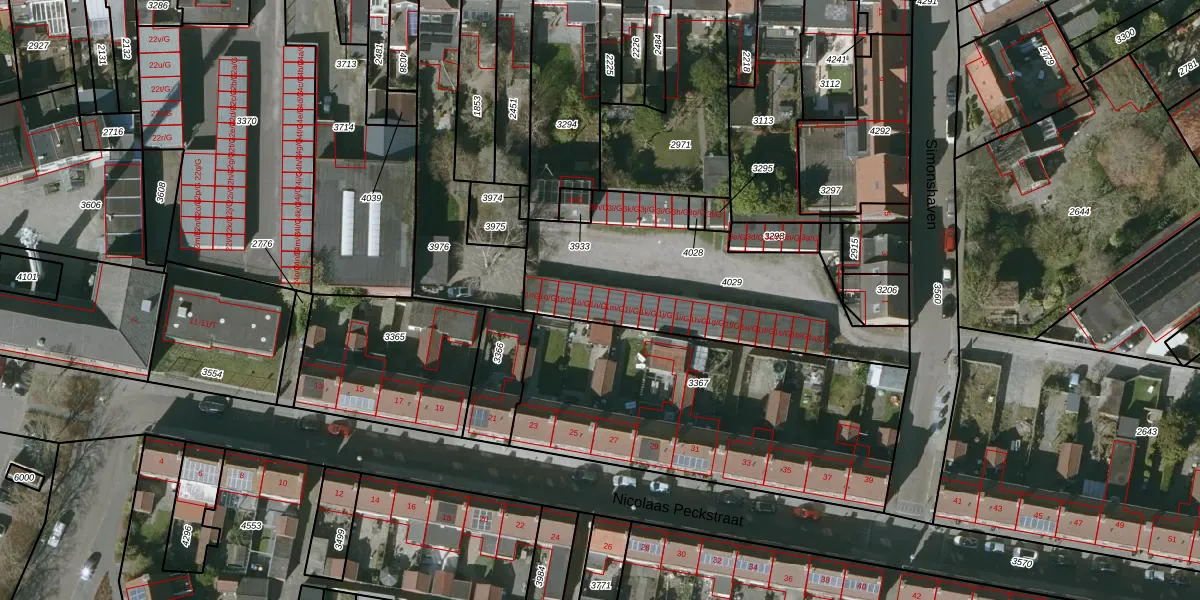 Simonshaven 1-n-G is gelegen op kadastraal perceel SBG02W4029. Deze kadastrale aanduiding is uniek en wordt gebruikt door het Kadaster om eigendomsrechten en andere zakelijke rechten vast te leggen. Het perceel maakt onderdeel uit van de kadastrale gemeente Steenbergen.