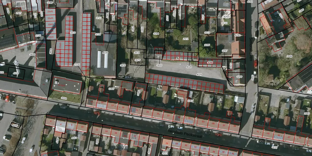 Simonshaven 1-p-G is gelegen op kadastraal perceel SBG02W4029. Deze kadastrale aanduiding is uniek en wordt gebruikt door het Kadaster om eigendomsrechten en andere zakelijke rechten vast te leggen. Het perceel maakt onderdeel uit van de kadastrale gemeente Steenbergen.