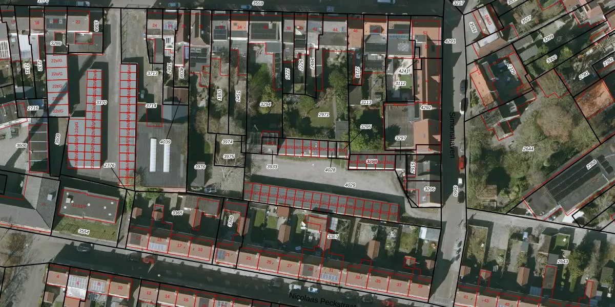 Het perceel waarop Simonshaven 3-j-G staat heeft een oppervlakte van 1045 m². Dit is een zeer groot perceel. De perceeloppervlakte wordt geregistreerd door het Kadaster. Gedetailleerde informatie over de maten van dit perceel kunt u vinden in het rapport Kadastrale kaart met maatvoering van Simonshaven 3-j-G.