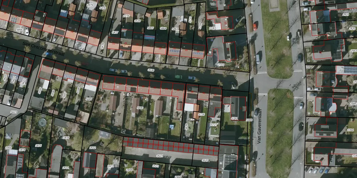 Het perceel waarop Sint Ontcommerstraat 36 staat heeft een oppervlakte van 1667 m². Dit is een zeer groot perceel. De perceeloppervlakte wordt geregistreerd door het Kadaster. Gedetailleerde informatie over de maten van dit perceel kunt u vinden in het rapport Kadastrale kaart met maatvoering van Sint Ontcommerstraat 36.