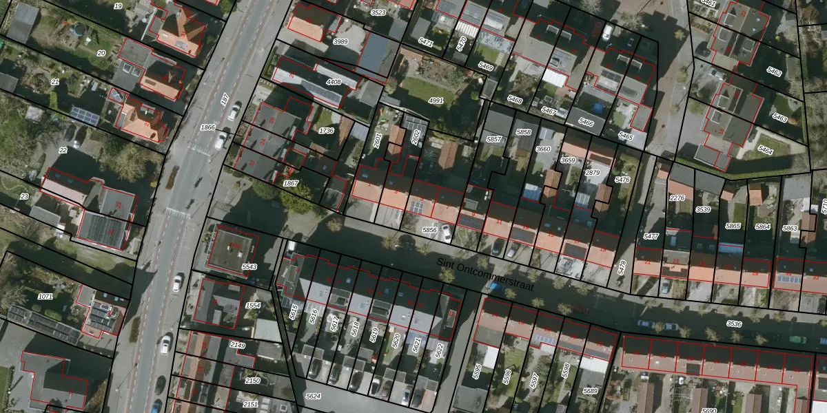 Het perceel waarop Sint Ontcommerstraat 5 staat heeft een oppervlakte van 344 m². Dit is een groot perceel. De perceeloppervlakte wordt geregistreerd door het Kadaster. Gedetailleerde informatie over de maten van dit perceel kunt u vinden in het rapport Kadastrale kaart met maatvoering van Sint Ontcommerstraat 5.