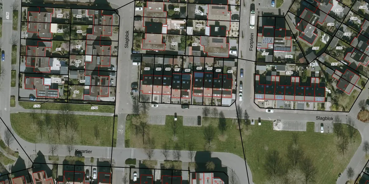 Gebruik de zoekbalk of klik op een perceel voor informatie over de adressen binnen dit perceel.
