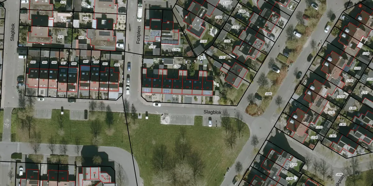 Het perceel waarop Slagblok 33 staat heeft een oppervlakte van 1285 m². Dit is een zeer groot perceel. De perceeloppervlakte wordt geregistreerd door het Kadaster. Gedetailleerde informatie over de maten van dit perceel kunt u vinden in het rapport Kadastrale kaart met maatvoering van Slagblok 33.