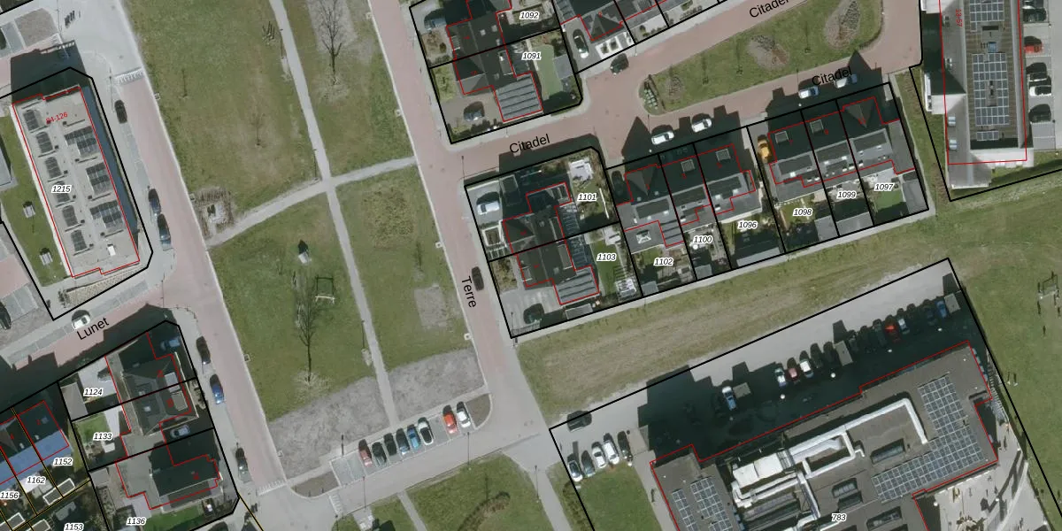 Het perceel waarop Terre 1 staat heeft een oppervlakte van 389 m². Dit is een groot perceel. De perceeloppervlakte wordt geregistreerd door het Kadaster. Gedetailleerde informatie over de maten van dit perceel kunt u vinden in het rapport Kadastrale kaart met maatvoering van Terre 1.