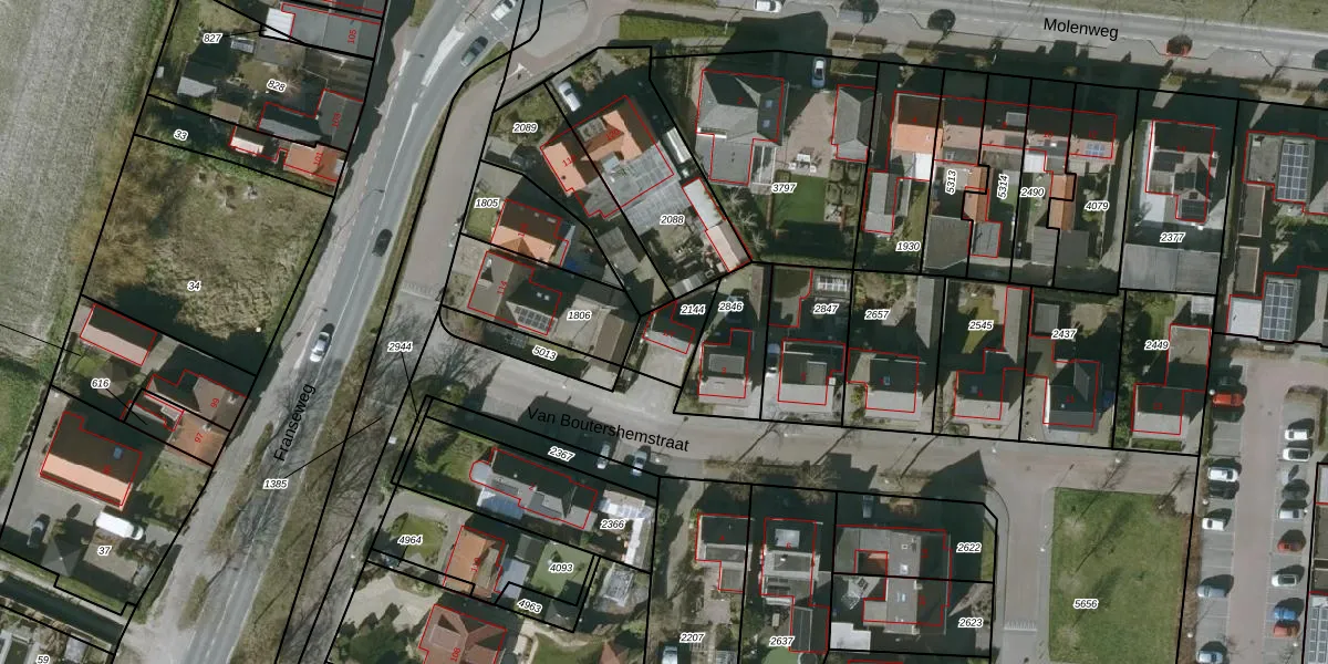 Gebruik de zoekbalk of klik op een perceel voor informatie over de adressen binnen dit perceel.