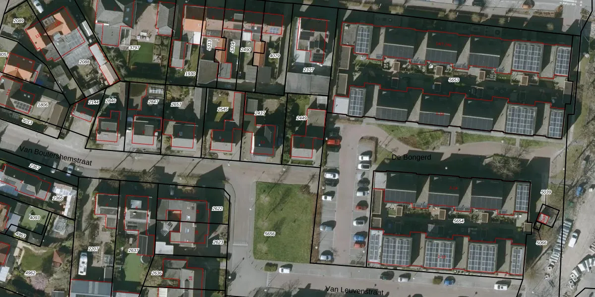 Van Boutershemstraat 13 is gelegen op kadastraal perceel SBG02Q2449. Deze kadastrale aanduiding is uniek en wordt gebruikt door het Kadaster om eigendomsrechten en andere zakelijke rechten vast te leggen. Het perceel maakt onderdeel uit van de kadastrale gemeente Steenbergen.