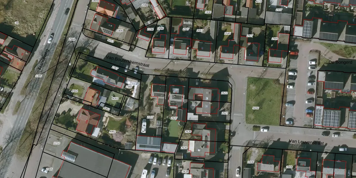 Gebruik de zoekbalk of klik op een perceel voor informatie over de adressen binnen dit perceel.