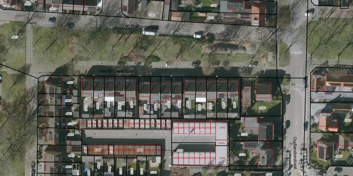 Gebruik de zoekbalk of klik op een perceel voor informatie over de adressen binnen dit perceel.