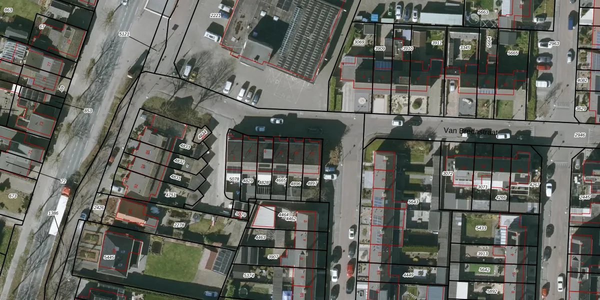 Van Bredastraat 12 is gelegen op kadastraal perceel SBG02Q4896. Deze kadastrale aanduiding is uniek en wordt gebruikt door het Kadaster om eigendomsrechten en andere zakelijke rechten vast te leggen. Het perceel maakt onderdeel uit van de kadastrale gemeente Steenbergen.