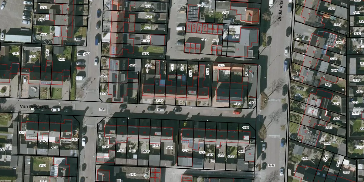 Gebruik de zoekbalk of klik op een perceel voor informatie over de adressen binnen dit perceel.