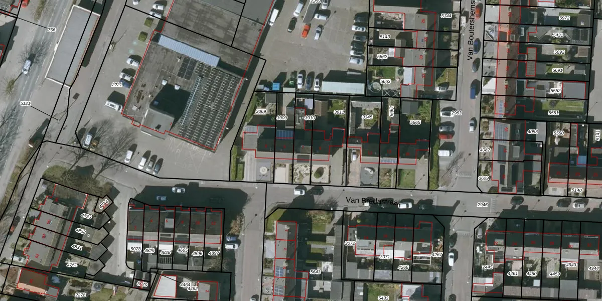 Gebruik de zoekbalk of klik op een perceel voor informatie over de adressen binnen dit perceel.