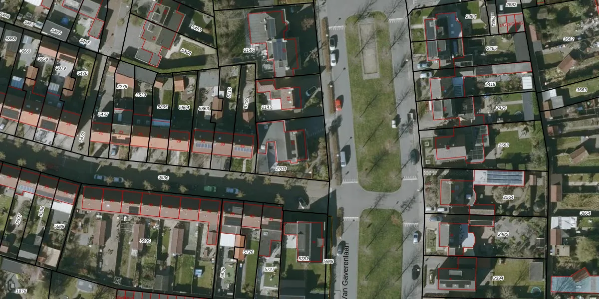 Gebruik de zoekbalk of klik op een perceel voor informatie over de adressen binnen dit perceel.
